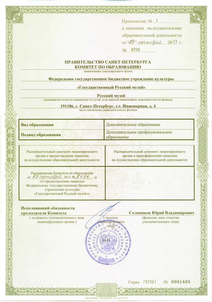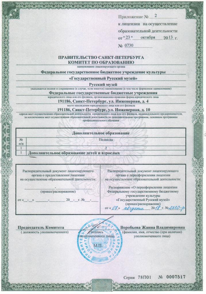 Образовательная деятельность Русского музея осуществляется на основании бессрочной Лицензии